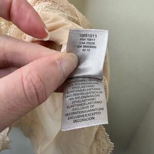 This dreamy Victoria’s Secret slip dress from 2012 perfectly blends romantic & vintage-inspired details with a timeless feminine silhouette. Made from a super soft, lightweight nylon-spandex blend, it drapes beautifully & feels silky against the skin. The delicate powder pink lace with gold shimmer accents trims the neckline, hem, & runs elegantly down the center & along the two side slits, creating a flirty, elongating effect.