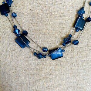 Lia Sophia Cobalt Blue Three Strand Glass Beaded Necklace