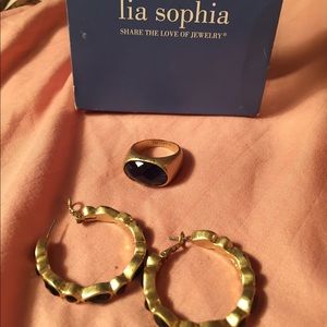 Sapphire in color....beautiful & elegant...ring size 7 1/2...earrings match ring ..just lovely