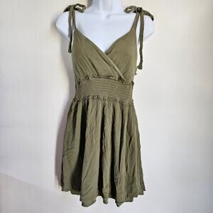 Liberty Love Olive Green Dress Jr Size L Tie Straps Y2K Forest Fairy Goblincore