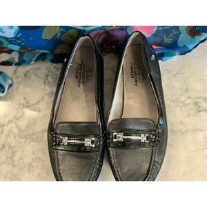 Cute Loafers Flats in Black Patent with Silver accents. Women’s size 9.