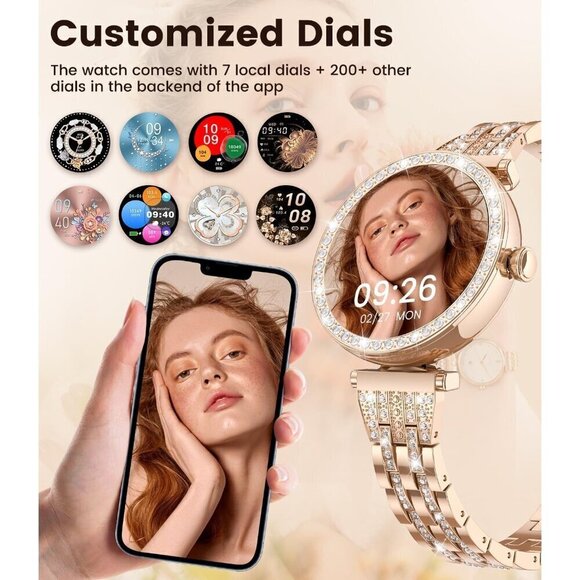 【Bluetooth Calling & Message Notification】With a fashionable diamond bezel design and a high-definition speaker, this women's smart watch combines elegance and functionality. Once paired with your smartphone via Bluetooth, you can easily make or receive calls, read messages, and view call logs. Stay connected with notifications through the "DAFIT" app, ensuring you never miss a call or message, whether you're in a meeting, working out, or cycling.