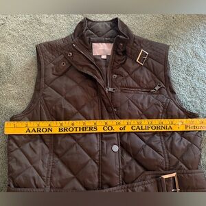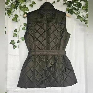 Like new puffer vest with belt. Pockets. Zipper and snap front closure.