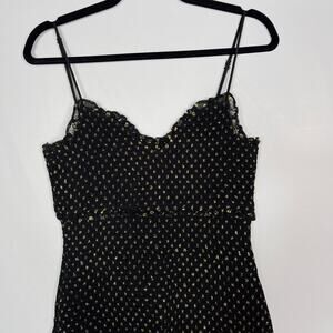 Likely Size 10 Black Gold Zephra Metallic Dot Print Ruffle Mini Dress Cocktail