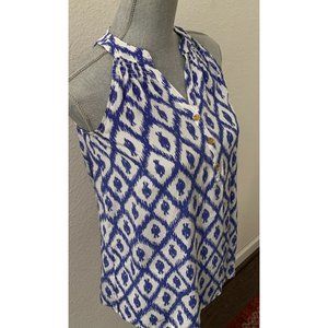 Lilly Pulitzer 100% Silk Top XXS Blue White Sleeveless Beautiful Buttons RARE