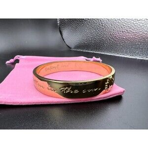Lilly Pulitzer bangle bracelet with A Story Written in the Sun engraved on it. Also has two suns on it.