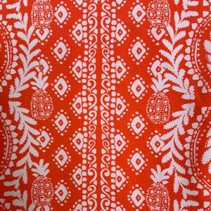 Vibrant coral dress with white floral patterns. Sleeveless design. Perfect for summer.