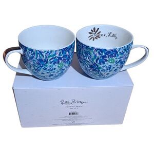 Lilly Pulitzer Floral Gold Blue Multi Ceramic Coffee Mug Dishwasher Safe