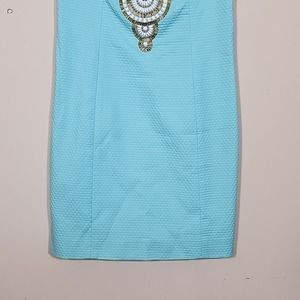 Lilly Pulitzer Gabi Shift Serene Blue Color excellent condition no tears no stains zip back lined beautiful color size 0. You have a question don't hesitate to ask.