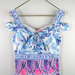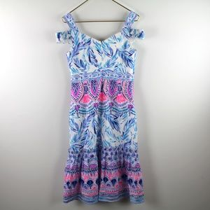 Lilly Pulitzer "Iva" midi dress in bright pink, blue & lavender on white