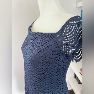 Lilly Pulitzer Jade Dress Navy Off Shoulder Shell Lace Beach Resort