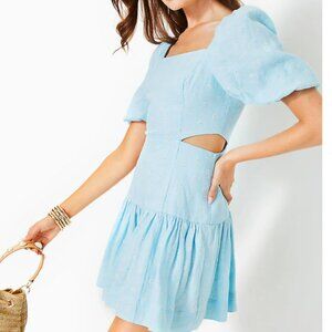 Lilly Pulitzer Kylanne NWT Blue Embroidered Flower Linen Fit n Flare Dress, Sz 0