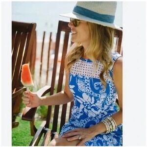 Lilly Pulitzer Marianne Shift Dress Blue & White Seahorse & Floral Eyelet Lace 2