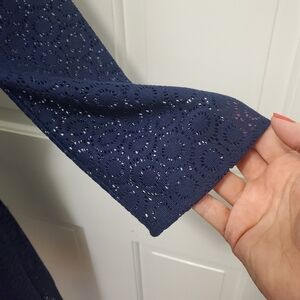Lilly Pulitzer Navy Alden Tunic Dress Embroidered Neckline Geocircle lace pattern Size Med.