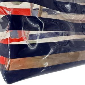 Lilly Pulitzer Shoreline Tote Raise The Sail Beach Bag Nautical Rare Preppy Cute Red & Blue Striped With Clear Plastic Details Nautical Rope Straps Easy Clean Large Travel Bag