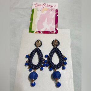 Lily Pulitzer Blue Raffia Chandelier Earrings Pierced