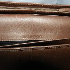 Condition is good with signs of wear on corners and coating rub off. Zipper works and bill compartments have no rips or tears. See pictures for additional description.