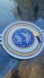 White background, in the center of the painting that represents two angels at play, framed by a very fine painting in pure gold. The edges are also in pure gold and cobalt blue.