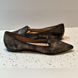 A suede loafer with elegant, feminine lines, including a pointy toe with padded midsole.