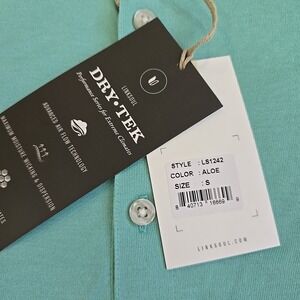 Linksoul Shirt Mens Smal Aloe Green Dry Tek Short Sleeve Golf Polo LS1242 Button