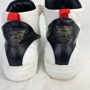 Make a style statement with the Minimal Fang Sneaker that features microlight high-profile rubber sole, & made with soft high-quality leather. LITA embossed gold shoelace bar, and leather back spoiler.