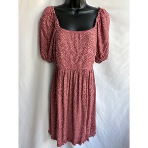 Live to be Spoiled Midi Cottage Prairie Dress Size M Red Floral Puff Sleeve