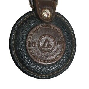 Liz Claiborne Logo Keychain Keyring Purse Fob Black Pebbled Brown Leather #70272
