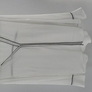 This elegant white sheer blouse by Liz Claiborne features a notched collar and a buttoned front, offering a classic and versatile style. The lightweight fabric drapes beautifully, making it perfect for both casual and formal occasions. NWT AND IN EXCELLENT CONDITION!