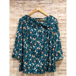 Liz Claiborne Women's Teal Floral Print Stretch Career Tunic Top Size PXXL