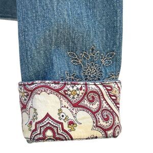 Liz Claiborne Jean Jacket Women's Small Blue Embroidered Paisley Trim Button-up