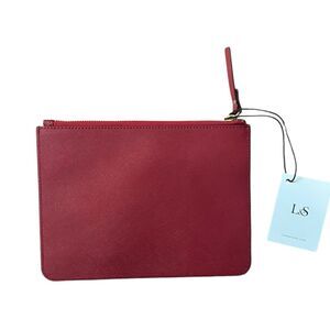 Style Tags: saffiano leather clutch, red zip pouch, minimalist accessory, large travel pouch, sleek handheld bag