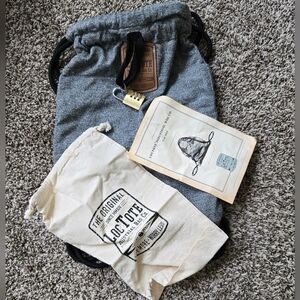 LocTote Flak Sack Sport Drawstring Backpack Gray Black Brass Combo Lock