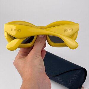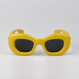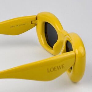 Bold, playful, and unmistakably modern — the Loewe INFLATED sunglasses bring sculptural elegance to a classic cat-eye silhouette. This standout model (LW40117I, color code 39A) features a full-rim frame in shiny yellow acetate, paired with soft grey organic lenses for a fashion-forward contrast that’s both wearable and artistic.