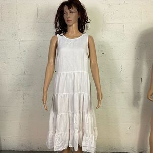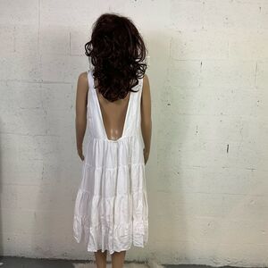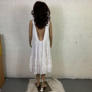 LOFT Beach boho white open back linen blend  tiered midi dress in size medium