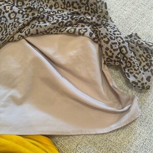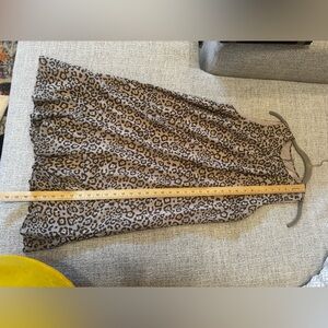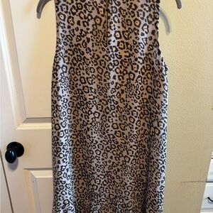 Loft Cream Brown Leopard Print Sleeveless Ruffle Hem Shift Dress Lined Sz M