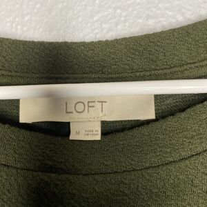 Loft Dark Green Crew Puff Sleeve Texture Short Sleeved Shirt Top Size Medium