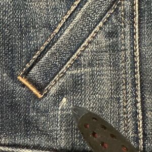 Gently used, excellent condition. Shows natural signs of wear from gentle use and wash. Small dot in the denim fabric, shown in photograph and flaw in denim. Trendy blue denim jacket with button closure. Features front pockets and a classic collar. 3/4 sleeves, hits at true waist- see fit on mannequin