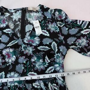 Loft Floral VNeck Long Sleeve Empire Waist Midi Dress Women's 4 Dark Whimsy NWT
