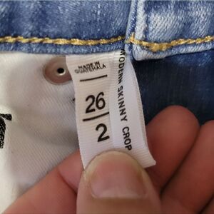 Loft Jeans Modern Skinny Crop Blue Medium Wash Raw Hem Embroidered Hem