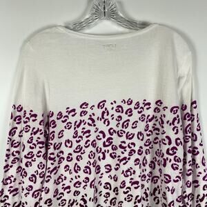 Loft Long Sleeve T-Shirt White Purple Ombre Leopard 100% Cotton Womens Sz Small