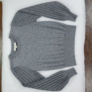 Loft Pleated Puff Sleeve Gray Sweater Size: Small