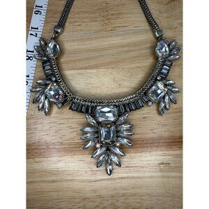 Loft Silver-Tone Crystal Statement Necklace With Rhinestone Accents
