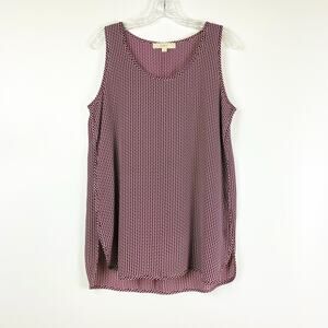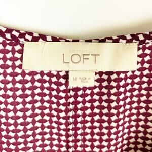 Loft womens blouse in red and cream print. Oversized and relaxed. Sleeveless. Round neck. Polyester. Size medium but might fit a large. Excellent used condition. No flaws detected. See measurements for proper fit.