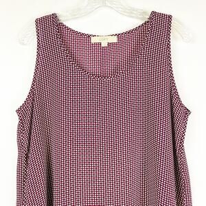 Loft Sleeveless Long Oversized Blouse Modest Red Cream Womens Size Medium