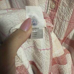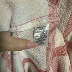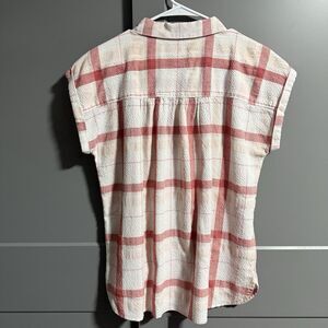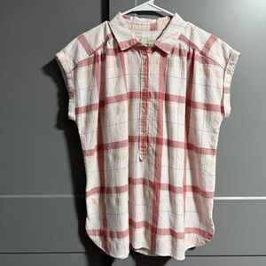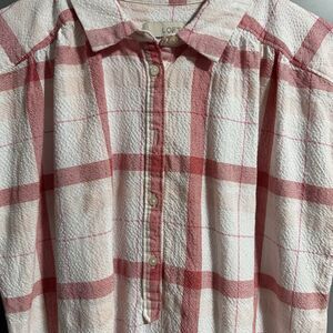 Loft Women Cuff Short Sleeve Plaid Seersucker Oversize Blouse Pink/White Medium