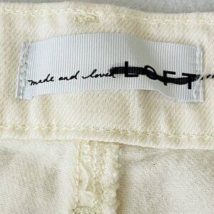 These cream-colored straight-leg jeans by Loft offer a versatile and timeless addition to your wardrobe. Crafted using a cotton-modal blend, they provide a soft and comfortable fit. Designed with classic five-pocket styling and durable stitching, these jeans are suitable for both casual and semi-formal settings.