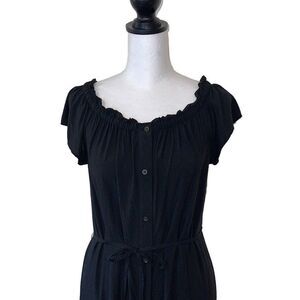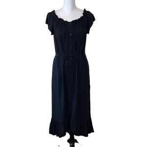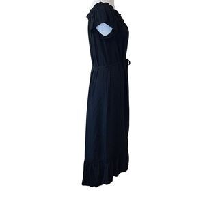 Loft Women's Hi Low Dress Elastic Neckline Maxi Flutter Small Petite SP Black. Button Down Closure. Tie Waist Belted.