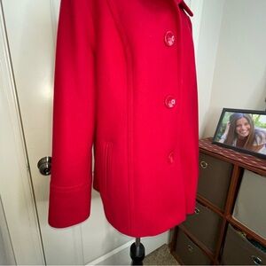 London Fog Red Wool Blend Pea Coat Single Button L