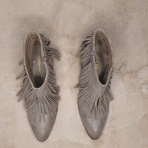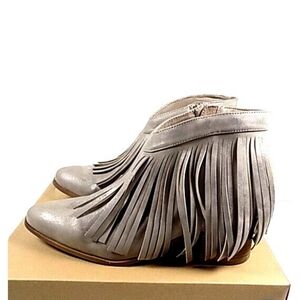 London Rag NWT Coastal Cowgirl Western Metallic Shimmer Grey Leather Fringed Block Heel Ankle Bootie, Such A Great Way to Elevate an outfit,  Southwestern, Festival, Fringe, Moto Boho, First Photos Inspo, Western, Bohemian, Eclectic, Y2K, Artsy, Bikercore