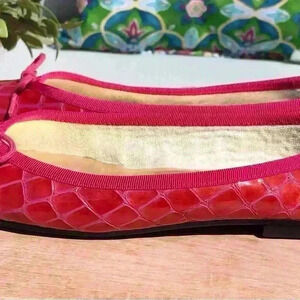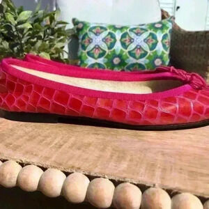 London Sole Pink Henrietta Patent Leather Croc Effect Ballet Flat Size 6